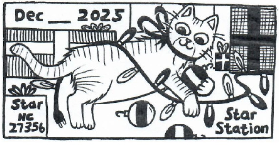 Star Christmas cancellation art contest features artist's cat tangling with light string