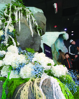 However, the flowing flowers, while beautiful, could hardly compete with the main and oft elusive attraction. On Saturday morning, shouts filled the ice cave when Anana made her appearance. Cries of “It’s here!” and “It’s coming this way!” guided children who pressed their hands to the glass for a closer look.