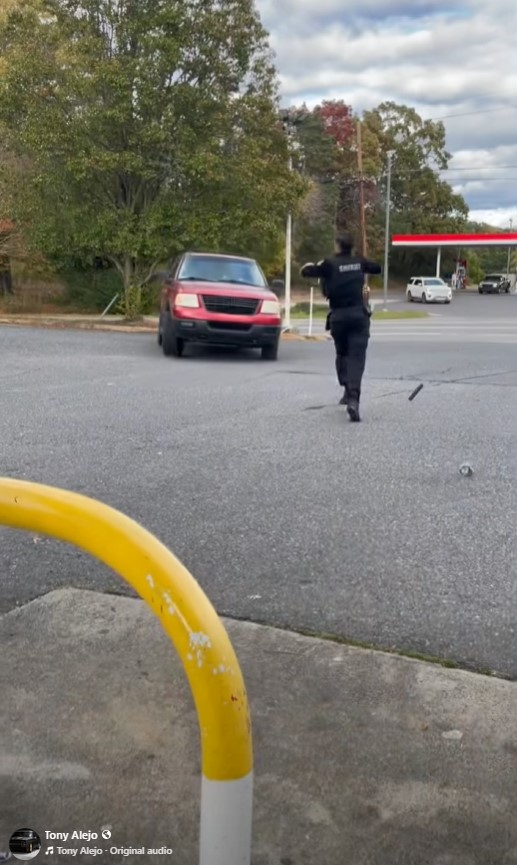 Video posted to Facebook shortly after the incident shows the deputy with his firearm drawn, giving commands and calling for backup as he chases the SUV on foot through the BP parking lot. The vehicle can be seen fleeing across Loflin Pond Road, cutting through the Exxon (Han-Dee Hugo’s) parking lot across the street, and turning east onto U.S. 64 with another deputy in a patrol vehicle following shortly behind.