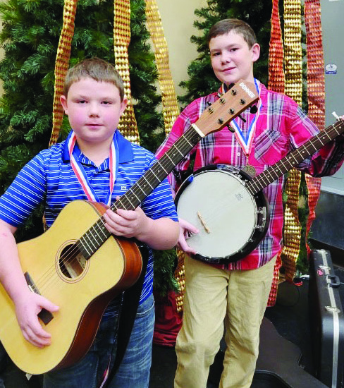 The showcase then began with the Hayes Brothers, Arthur, 14, on guitar and Alexander, 7, on bass, performing a trio of tunes before Arthur switched to mandolin to pick “Salt Creek” for their last song.