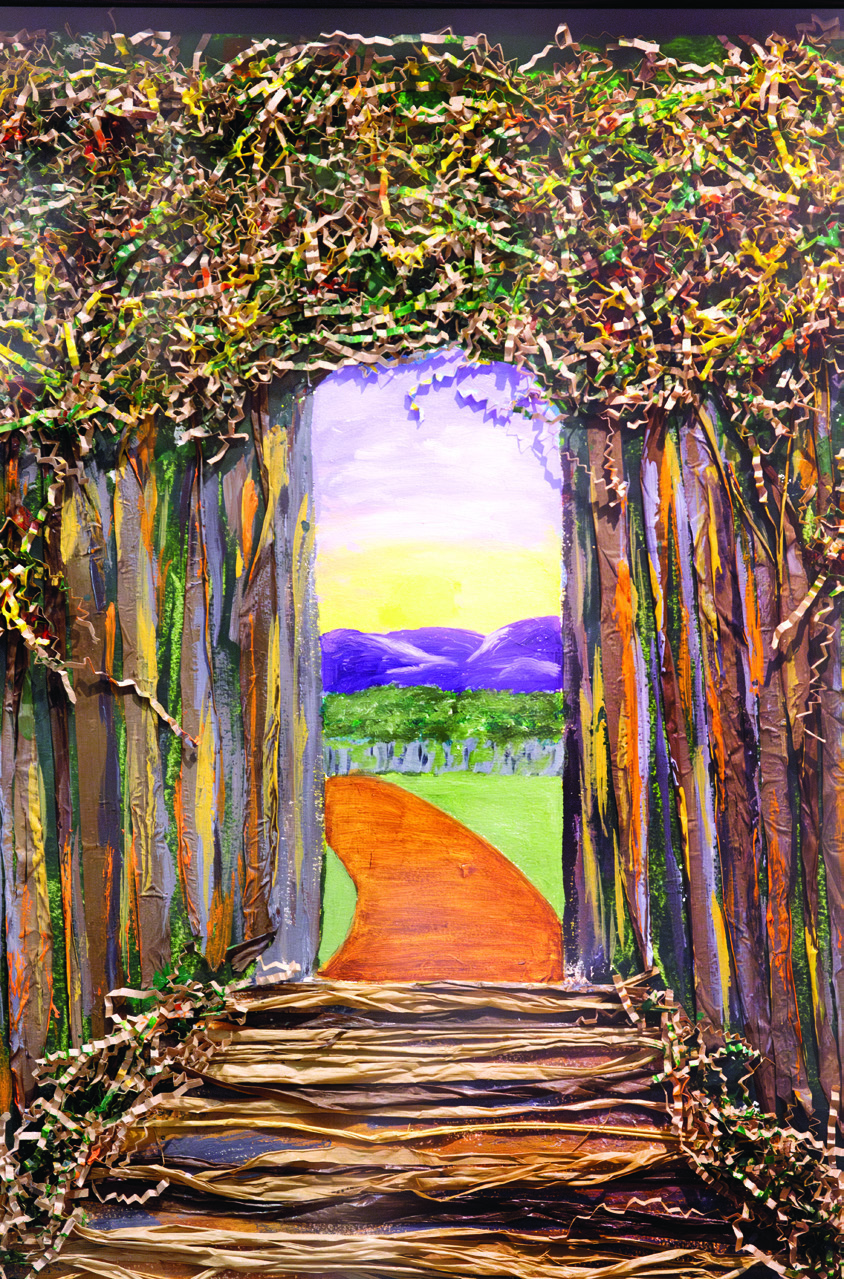 This is a mixed media piece by Sandra Martin, ‘Road to Serenity.’