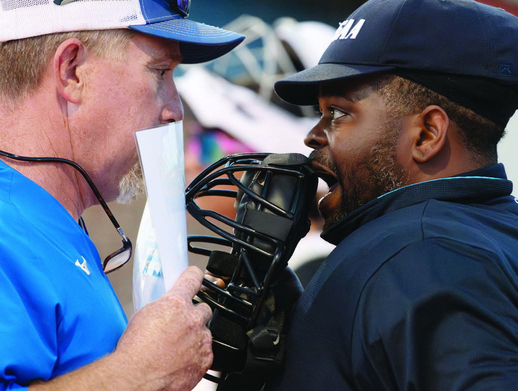 Randleman teammates mob Elsie Prince (blue helmet) after she hit a grand slam in their win over Southwestern Randolph last week. However, the umpire ruled her out when the mob kept her from touching the plate (Photos: Eric Abernethy / Randolph Hub)