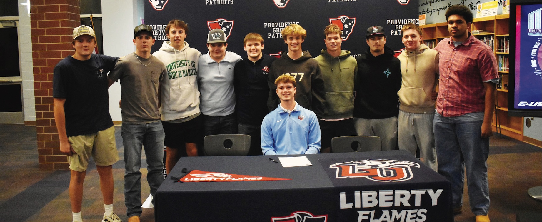 Carson Jones is surrounded by teammates at his signing with Liberty University. (Photo: SportsTone